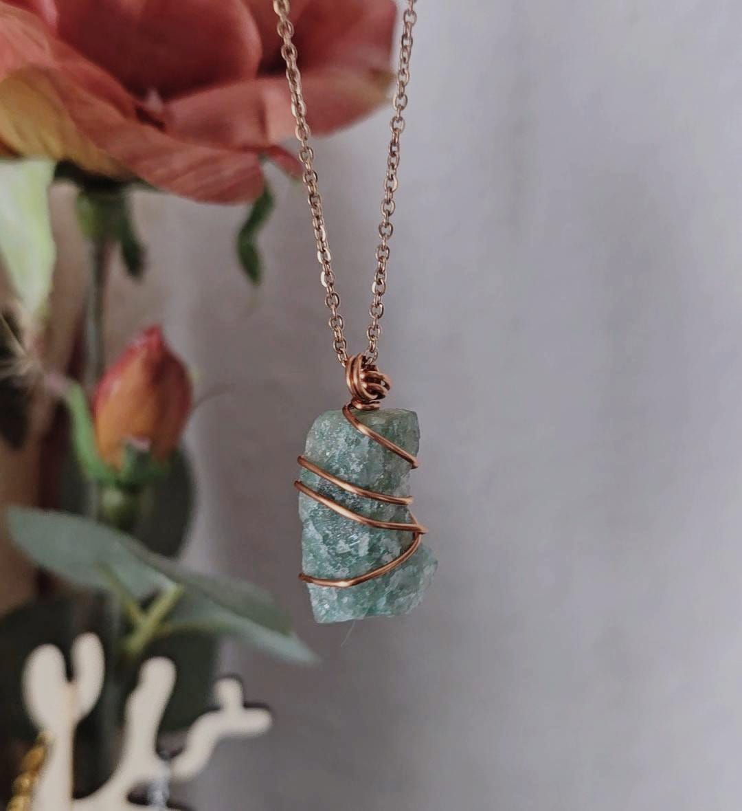 handgefertigte Herzkristallkette aus einem grünen Aventurin in deiner Schmuckfarbe.