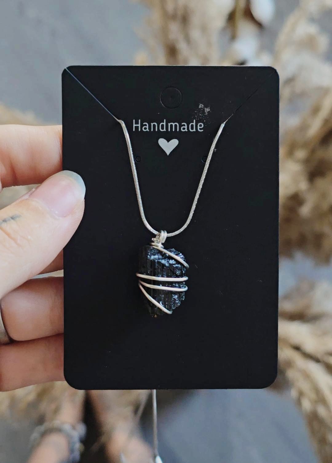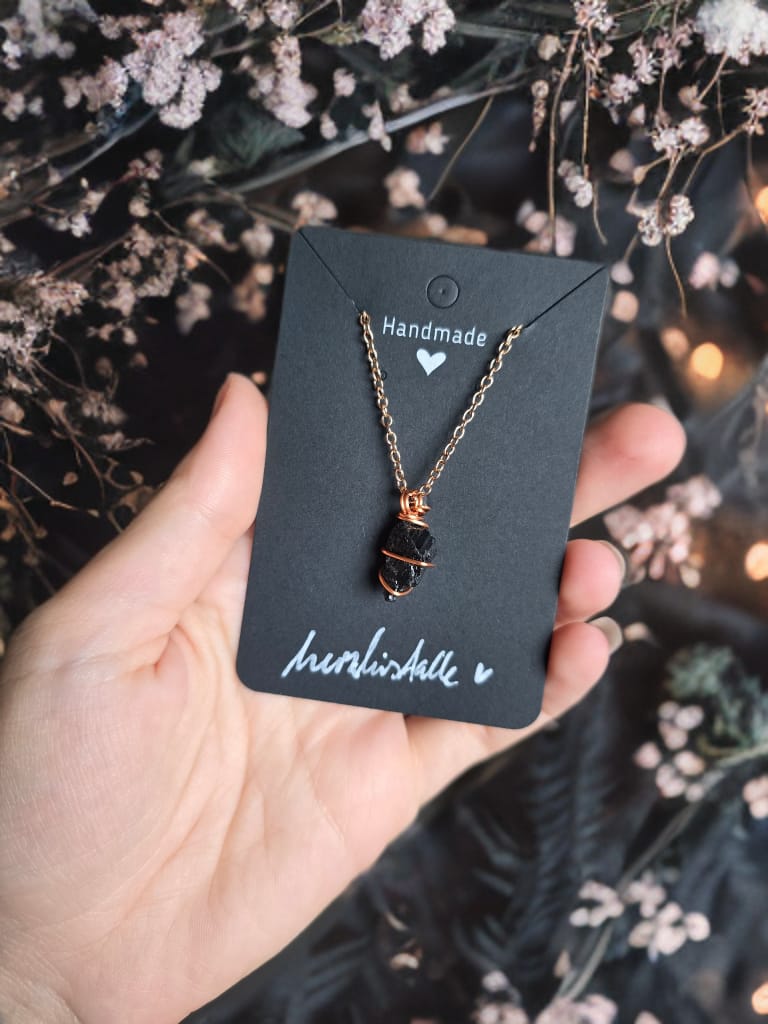 handgefertigte Herzkristallkette aus einem Turmalin in deiner Schmuckfarbe.